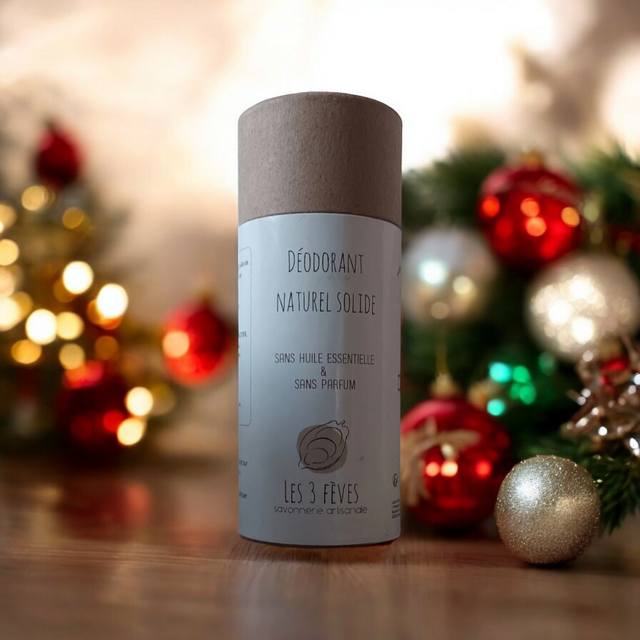 A base de beurre de cacao bio ainsi que d'hydroxyde de magnésium et de l'oxyde de zinc sans nanoparticules pour absorber l'humidité plus efficacement.